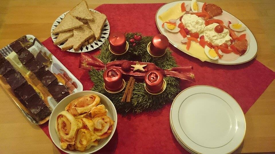 Vcera mal drahy Vianocnu kapusnicu z prace, ktoru ani neochutnal, ale vinka ochutnal evidetne dost, tak ma tazky den🙂 tak u nas sa dnes musel varit vyvar ako liek, my sme s malym mali masko, ryza, stavicka, uhorkovy salat a teraz mame na veceru asi linecke pecivo, ktore lepime lekvarom, ale nejako rychlo sa mina. No a drahy ma Coca Colku🙂) zajtra asi klasika pecene kura, zemiakove pyre. Pekny vikend vsetkym!!