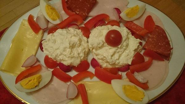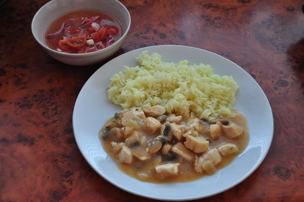 Ja som dneska nevarila,dojedli sme pečené kura zo včera s plnkou a ryžu. Práve si miesim cestá na linecké a lieskovcové rohlíčky 😉