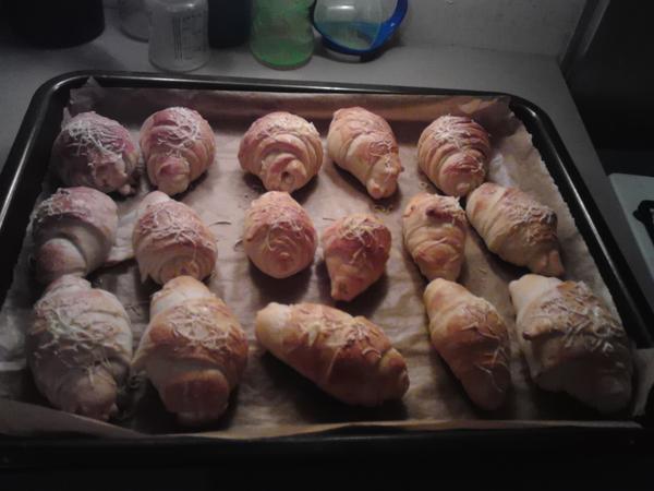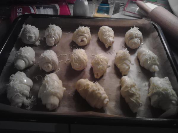 Ja som vecer piekla toto...recept v albume u @1mirka1 ,mensie su sunka,syr a vacsie su malokarpatska,syr....zamiesila som este pol davky,tam som ubrala sol a urobila hniezda..plnka-mlete orechy,skorica,kakao cukor....kus sa mi smykla ruka s mliekom,tak to bolo redsie,ale chlopy chvalili 🙂