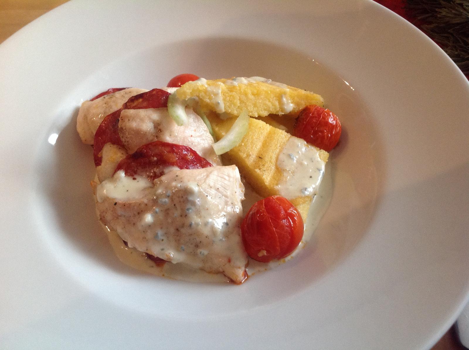 @vso10 kuracie prsia(osolene a okorenené a nakrájané na plátky) s chorizom aj s paradajkami zapiect na 200 st cca 20 minút. Omáčka:roztopiť nivu s encianom s troskou mlieka a maslom plus trosku čierneho korenia a muškátový orech (moze sa pridať jeden strúčik cesnaku prelisovaneho) Polenta: podla návodu na obale -plech vystlat papierom na pečenie tam sa to vyleje a zarovna a nechá stuhnut. Po stuhnuti nakrajat na stvorecky a dat do grilu. Takto sme to mali my ale môžeš aj ryžu k tomu a omáčku len nivovu bez encianu etc ;)