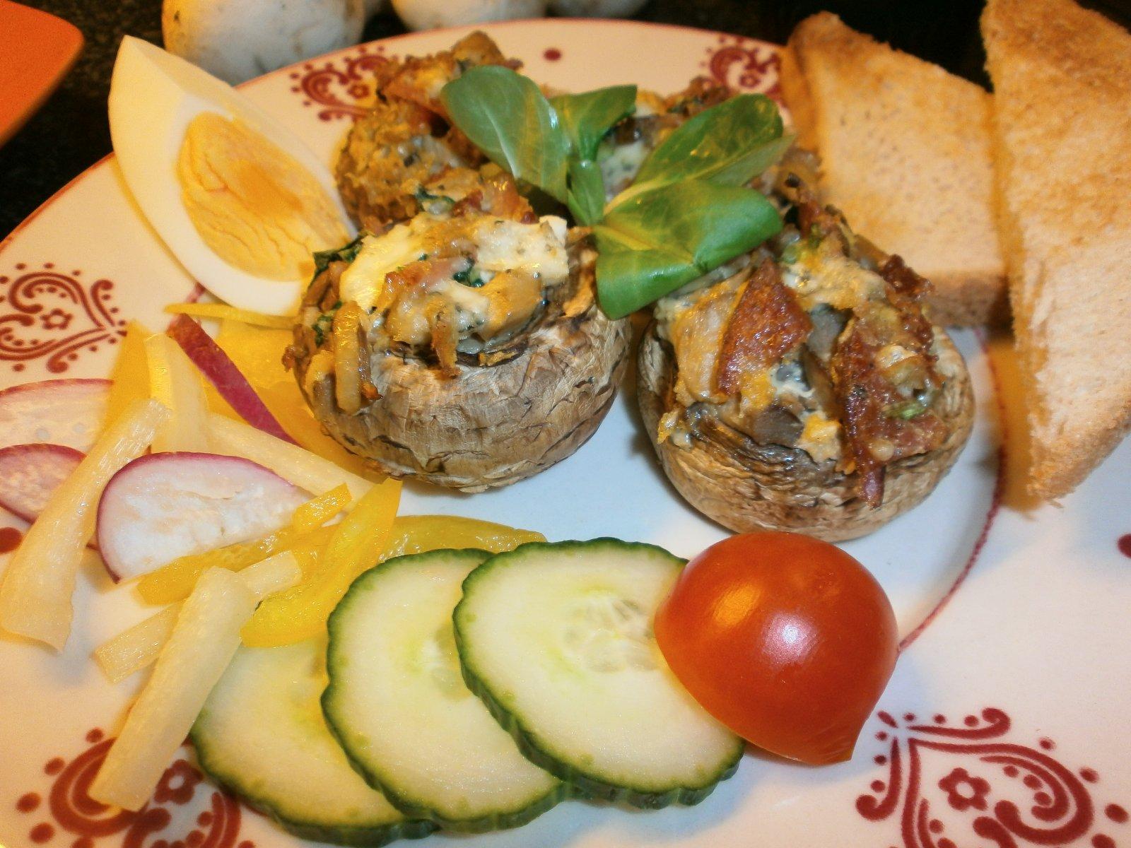 @womankc zmiesať zeleninku-paprika,ľadový šalát,mrkva,uhorky,paradajky(komu co chuti).kuracie prsia:okorenené a osolene urobene na pare.Sampiony ugrilovat ale môžeš aj na panvici osmahnut. Dresing: medovo-horcicovy.Vsetko zmiesať pridať natrhanu mozzarelu a na vrch stratené vajce 🙂