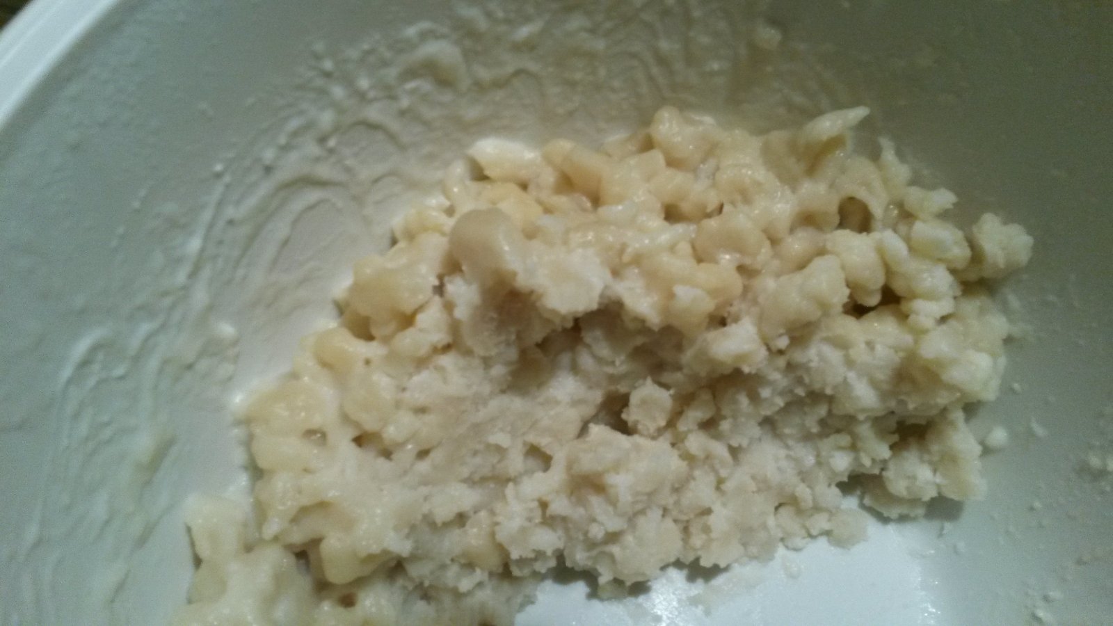 Postup: do misky si dáš všetky ingrediencie a vidličkou premiešavaš, to cesto je také zvláštne, je veľmi veľmi lepkavé a zo začiatku sa ti nebude zdať že sa spája, no ono sa spojí. Nesmie sa miesiť, ani dávať kvasiť.