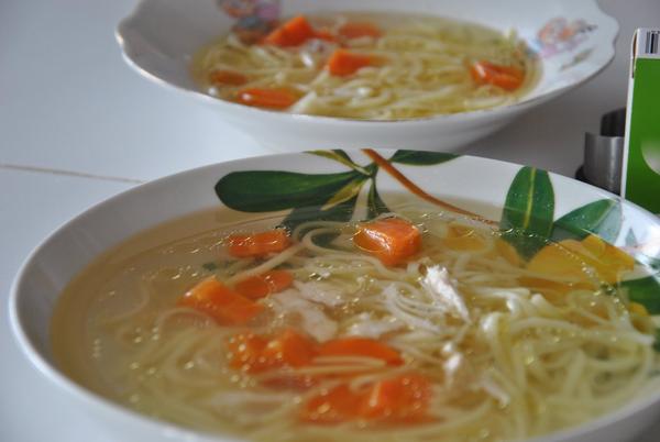 po: dojeme z nedele vyvar z kosti z kare+kurac.trupu s rezancami a smotanovy perkelt z kur.prs s kolienkami