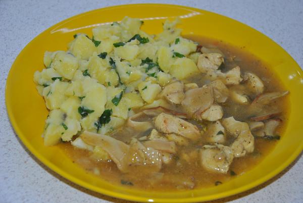 *zemiacky na masle a cibulke + medové kuracie prsia / kuracie prsia s lesnými hríbikmi