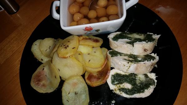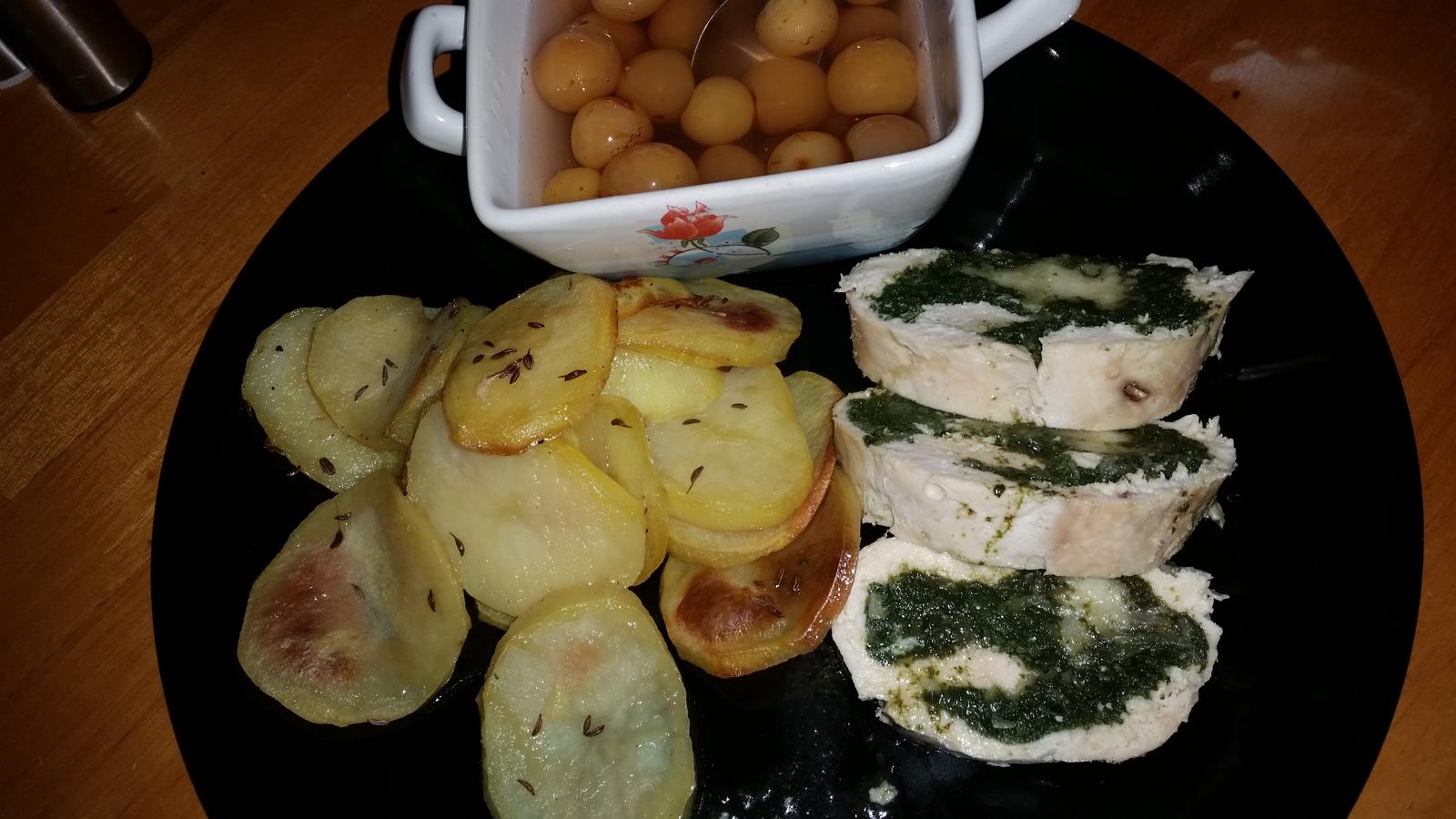 Kuracia roláda so špenátom a syrom+pečené zemiaky