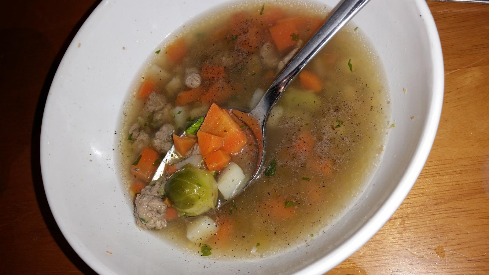 Dnes jednoducha sedliacka polievka,vysmazana cuketa a zemiaciky s maslom 🙂