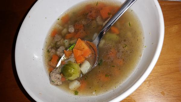 Polievka- Kurací vývar s pečeňovými haluškami