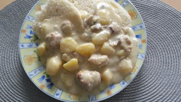 ŠT: zemiakovy paprikas so slov.tocenou salamou,chleba