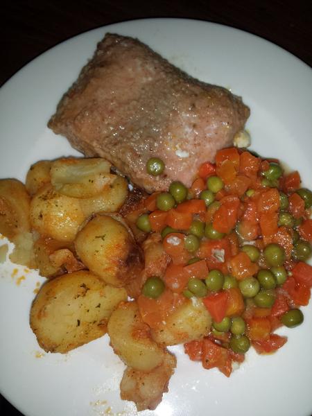 Včera bravčové na kocky s lečom a cícerom. Dnes znová bravčové v horčicovej omáčke s dusenou zeleninou (mrazený mix s brokolicou.) Prajem dobrú chuť a pekný deň 😉