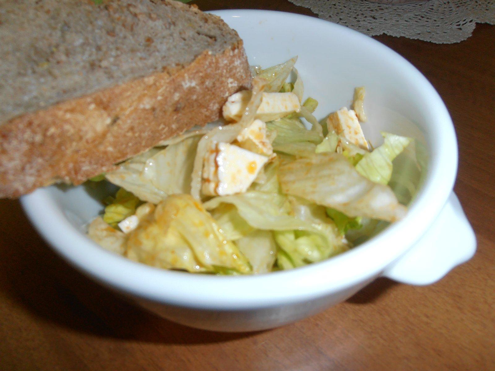 ľahká večera ( ľadový šalát +nakladaný syr v oleji ) a tvarohová štrúdľa