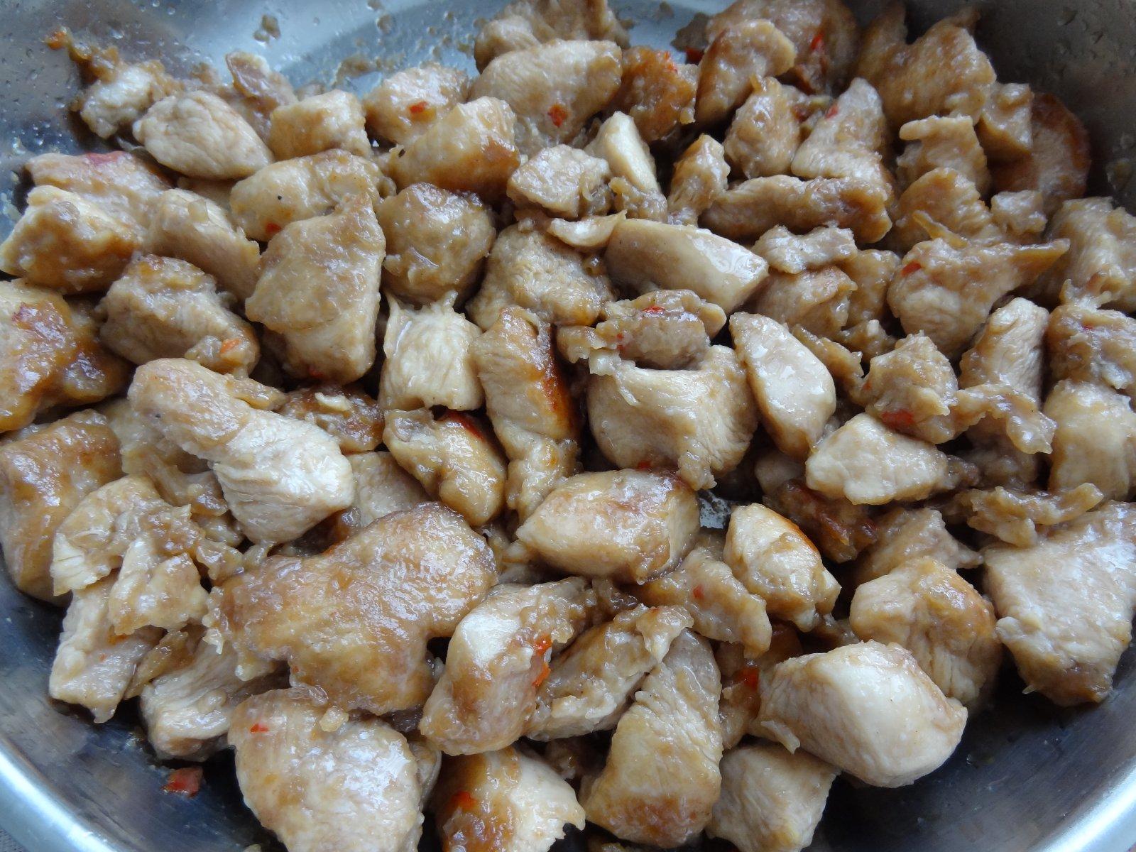 @raza na oleji osmažíš umyté krupky zaleješ vodou podobne ako u tarhoni počkáš až voda vsiakne a prileješ ale dva pohárky vody a necháš zakryté variť na miernom ohni. vodu podľa potreby dolievaš. Krúpky musia byť mäkké. Potom to mäso som robila tak že som na oleji osmažila cibuľu a do toho som pridala nakrájané kuracie prsia. Osmažila až kým neostalo biele popridávala trošku kary, úplne málo zázvoru, sojovu omáčku mletej červenej papriky podliala vodou od oka a nechala dusiť do polomäkka, pridala som na kolieska nastruhanú mrkvu ja so dávala 2 mrkvy ale môžeš dať podla chuti. A zase som to dusila do mäkka aby bola mäkká mrkva a aj mäso. Dochutila solou a ešte na začiatku varenia som tam pridala jeden slepačí bujón. Dala som zápražku s paprikou a troškou kary. Nechala prevariť.