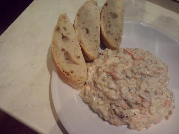 @alexandra2710 áno 0,5 kg ryby mala som hoky povaríš 10 min vo vode spolu s 2 bobkovými listami, celé nové korenie 5 ks, trošku soli a 3 lyžice octu, necháš vychladnúť a vidličkou popučíš alebo rukou jednu mrvu uvaríš tiež v osolenej vode a postrúhaš na hrubom strúhadle cibuľku pokrájaš na drobno 2 kyslé uhorky na malé kocky zmiešaš s tatárkou trošku čierné korerenie mleté a podľa chuti osoliť je veľmi dobrá a cítiť kúsky ryby 🙂