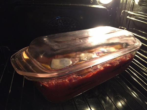 Domácí kuřecí šunka právě dovařená. Zitra si dáme do nosu.