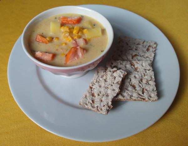 My sme mali túto skvelú sýtu krémovú polievku s údenou rybou a kukuricou