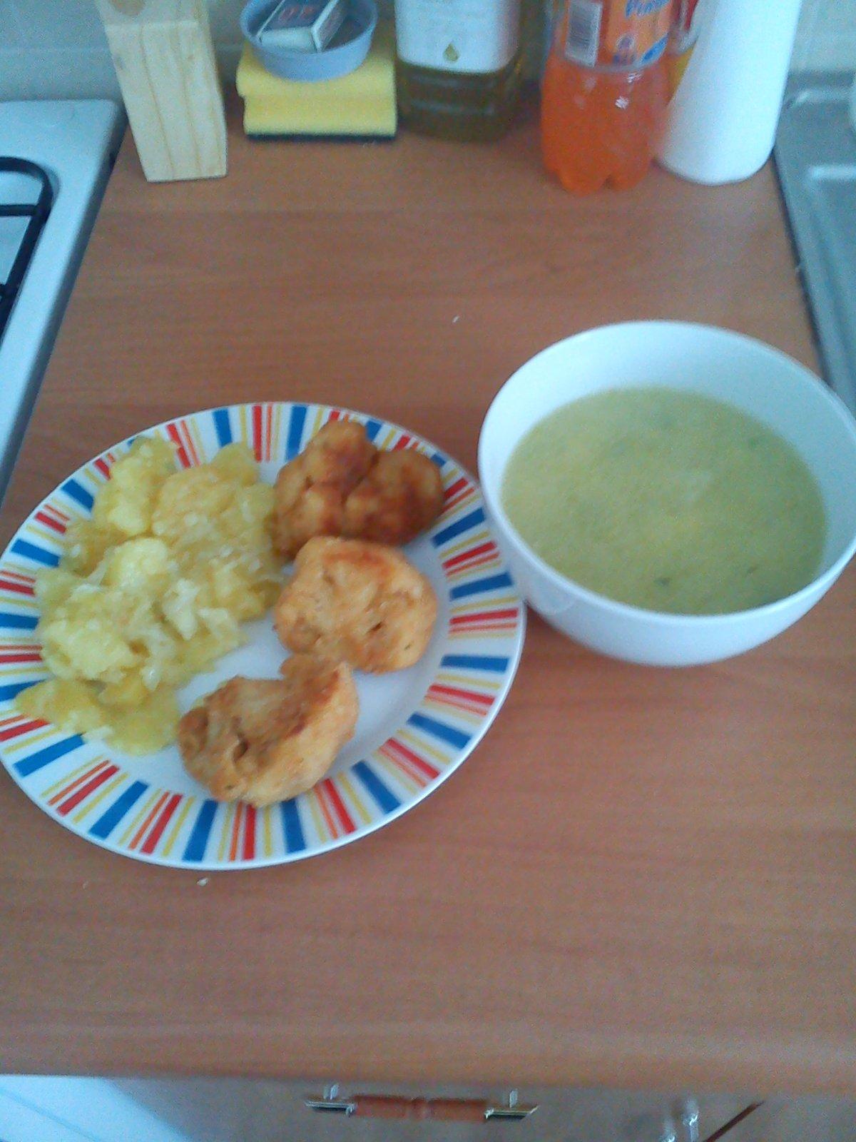 VARILA SOM ZASMAZENU POLIEVKU S KRUPICOVYMI HALUSKAMI,VARENE ZEMIAKY NA CIBULKE A VYSMAZANY KARFIOL 🙂