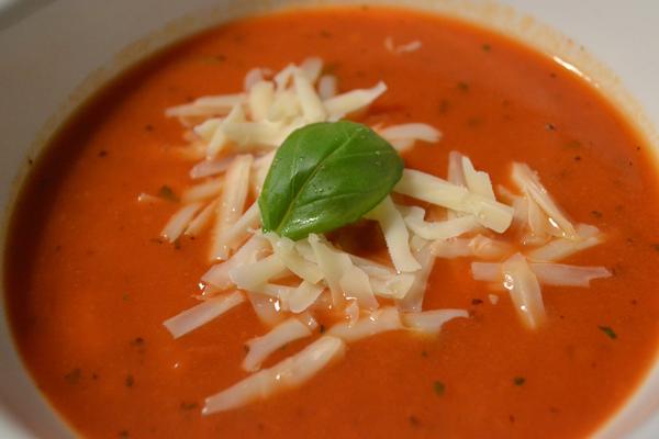paradajkova polievka, vysmazany syr, varene zemiaky, tatarska