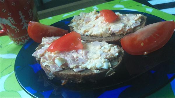 naša večera zapekané rohlíky v rúre ( maslo, šunka, syr, pretlačený cesnak) príloha rajčiny, paprika 🙂