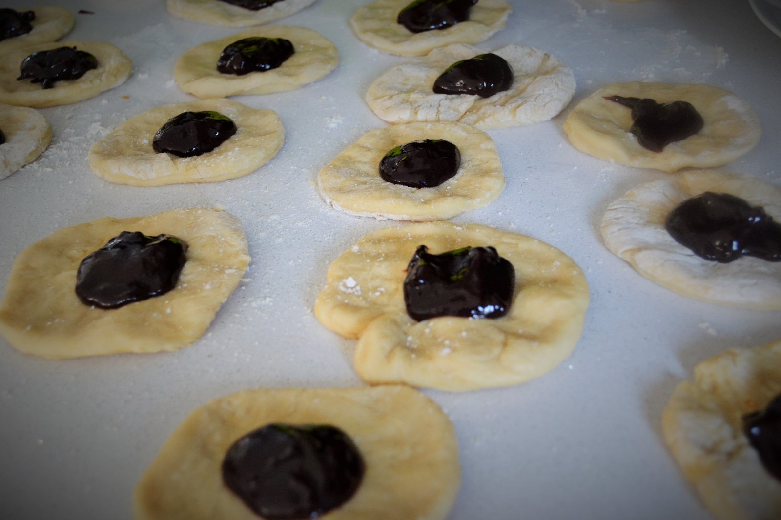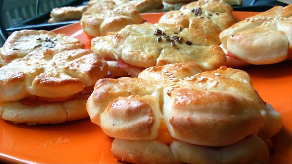 buchtičky robím tak, že z cesta vyvaľkám dlhé šúlance (na dĺžku celého plechu), prvý položím do stredu, potriem olejom a ďalšie prikladám z oboch strán, zase potriem olejom a takto až kým sa mi zaplní plech, potom zoberem krájač na cesto alebo keď nie je tak niečo ostrejšie, porežem šúlance tým druhým smerom aby z nich vznikli také tehličky (je to jednoduchšie a menej pracne, ako by som mala toľko šúlančekov šúlať), rezy tiež potriem olejom a keď sa upečie (aj keď sa mi cesto rozleje) krásne sa od seba tehličky odlepujú - to ja len návrh na menej práce 😀