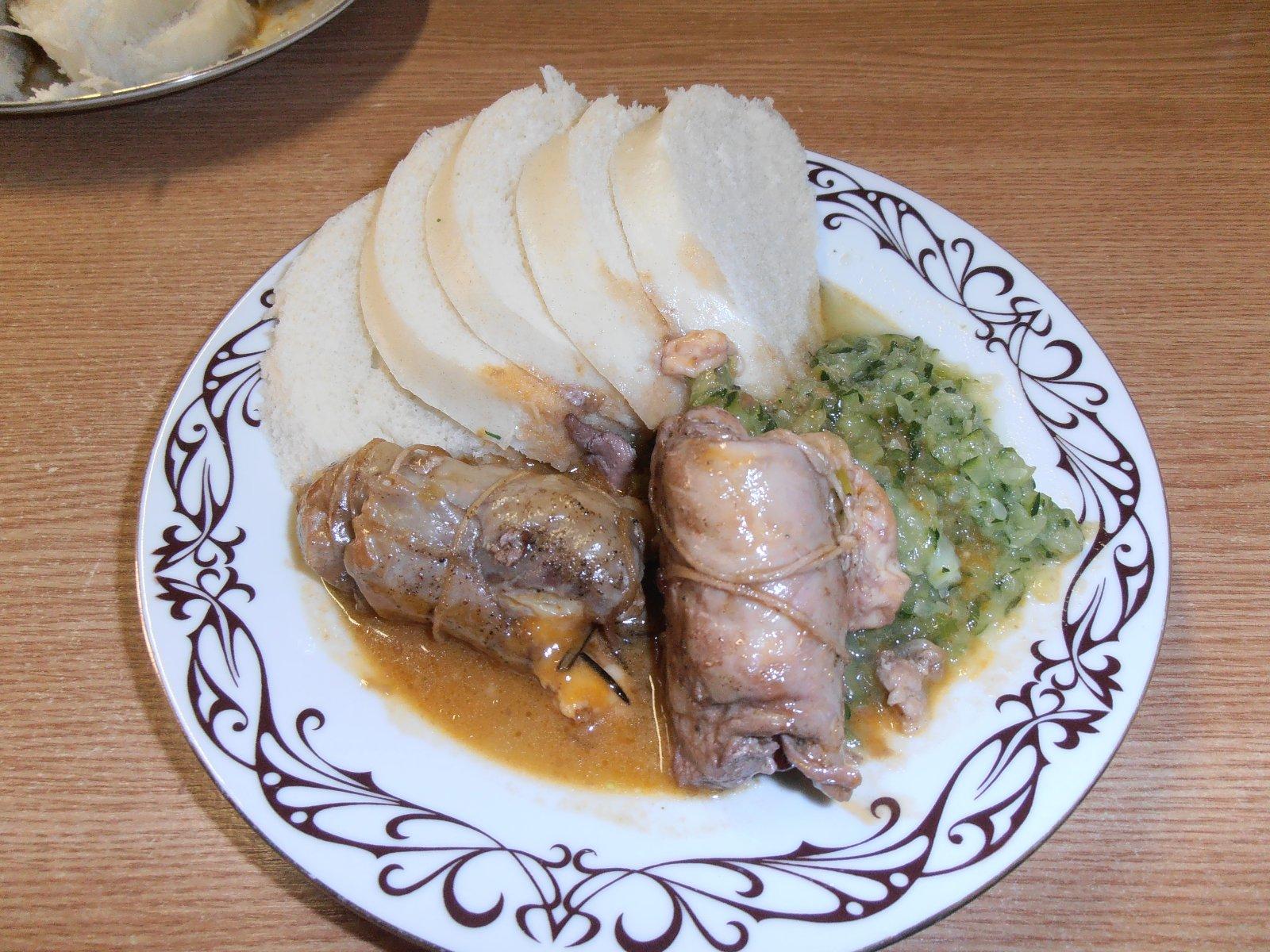 králičie zvitky plnené údeným a syrom,cuketová príloha