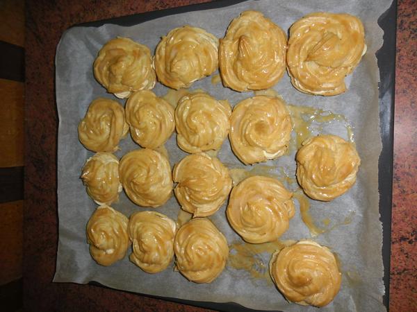 Na mém dnešním narozeninovém mejdanu se mimo jiné podávali : Pizza šneci a samozřejmě : Karamelovo-vanilkové větrníky. Všeci mlaskali blahem 😀 Mmmmmm ....
