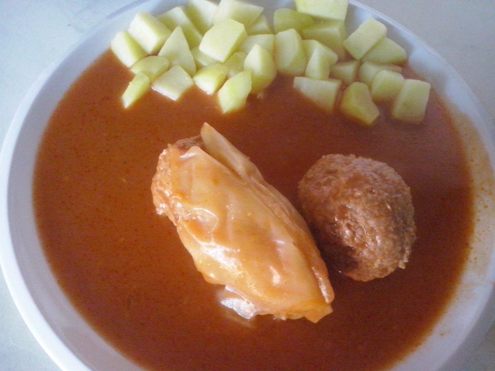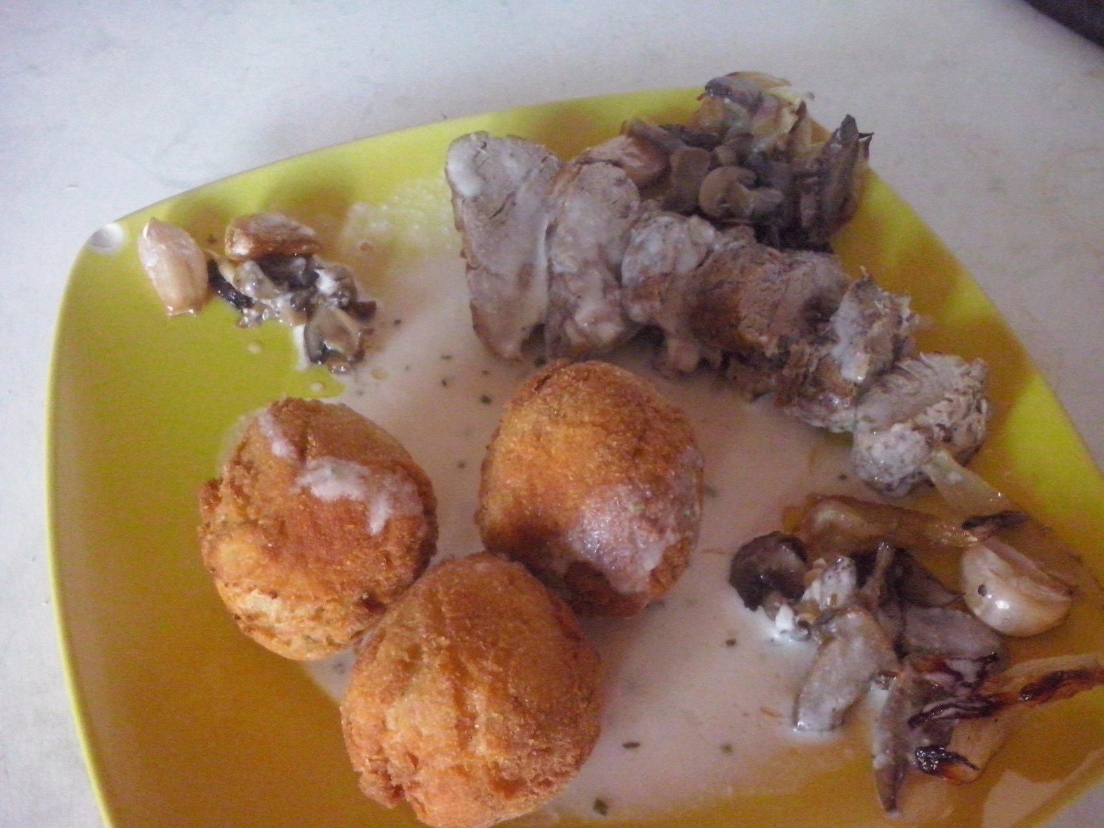 ahojte prikladám aj ja niečo ... panenka hubová omáčka a plnené zemiaky s nivou syrom , guláš no bohužial nie kotlíkový, zemiaky na kyslo so špekáčikom, plnená paprika, a znovu panenka minútková so šampiónmy brynzová omáčka a žemlové knedle vyprážané a na záver plnený kapustný list s kyslou smotanou