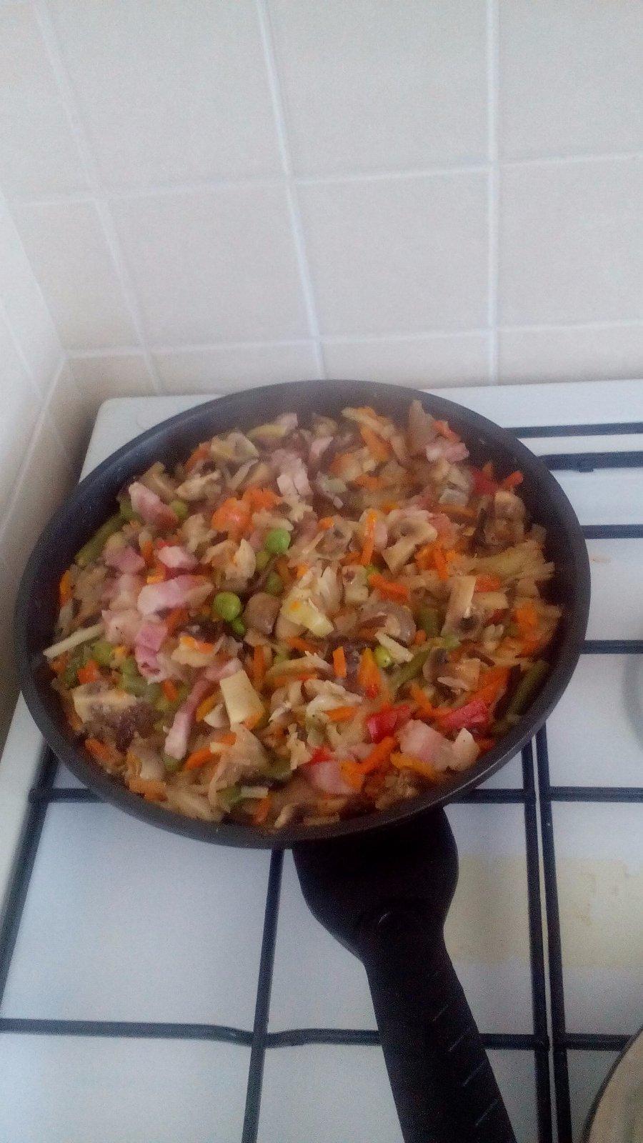 zeleninova polievocka s haluskami, cestoviny vrtulky a kuraci perkeltik 😉