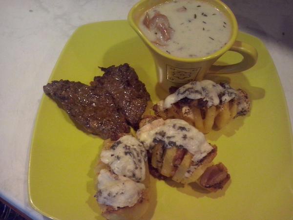 v sobotu sme boli v Tatralandii,tak zemiakové osúšky s pečenými vykostenými stehnami, kaiserky, orechovník..