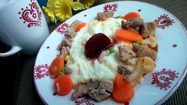 dnes vyvar so zeleninou a rezancami, pecena krkovicka, koprova omacka, domaca knedla a ako kolacik marhulovy mriezkovy kolac 🙂