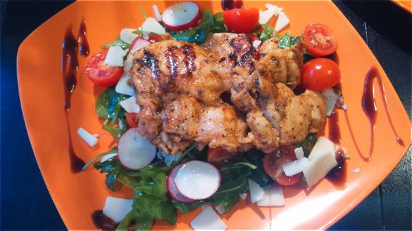 U nas sampionova kremova polievka+ masko na hriboch s ryzou a salatom.