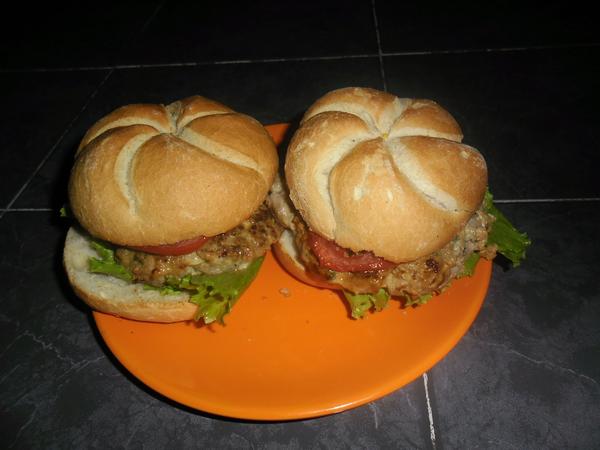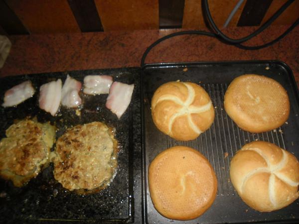 Dostali jsme dnes chuť na domácí hamburgery, tak jsme si je udělali. Pomleli jsme si doma čerstvé masíčko, dobře ho ochutili, uplácali placičky a dokřupava ugrilovali. Žemle sice tentokrát kupované jsme taky dali zkřupavět na gril. Naplnili jsme je salátem, ugrilovaným burgerem, sýr, rajčátka, do křupava ugrilovaná slaninka, hořčice nebo kvalitní kečup a byla to bašta jak vyšitá. Jen příště to ještě doladím tím, že upeču moje hamburgerové žemle /podle Čistinky/ a bude to dokonalé.