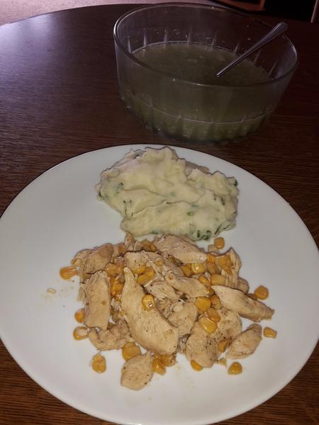 zeleninová polievka so slížami, cestoviny s kuracím mäsom 🙂