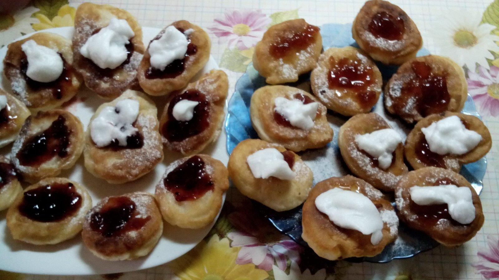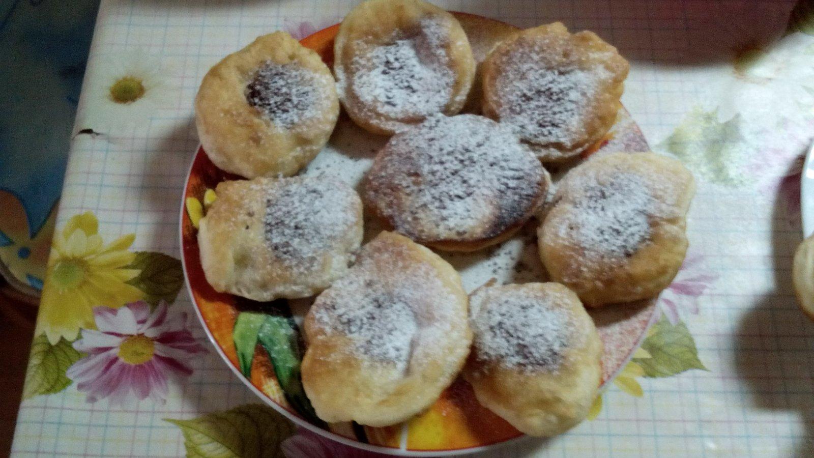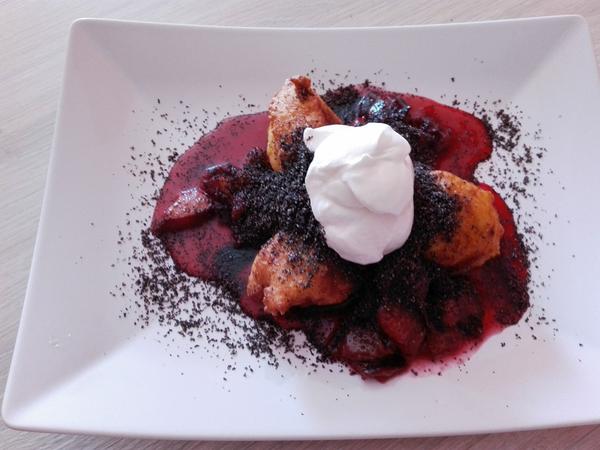 Alebo zemiacikove cesto, z toho lyzicou urobene sisky, vysmazene na oleji, slivkova omacka, posypane makom, kysla smotanka...