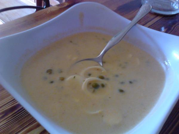 Polievka zo sucheho hrachu so zemiakmi a parkom, druhe kuraci perkelt s domacimi haluskami. A kolacik broskynovy s tvarohom a kyslou smotanou. Bru chut vam vsetkym 🙂