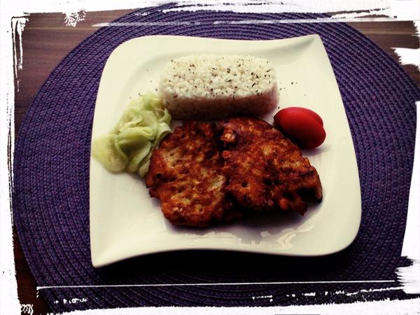 Prvy krat som dnes robila Strapate rezne a je to mnamka,,, namiesto sampionov som dala kukuricu ☺ k tomu ryza a uhorkovy salat