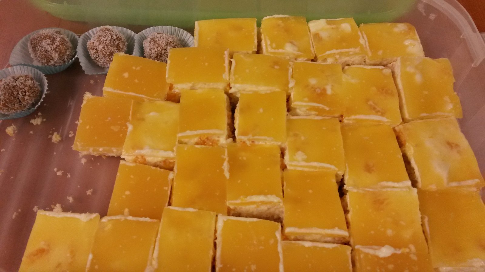 My sme mali včera zemiaky s petržlenovou vňaťou a kuracie stehná plnené kápiou, potom čínu s ryžou, šošovicovú polievku a piekla som jablkové pyté, špaldové jogurtové pagáčiky. No a do práce keďže som mala narodky, som robila marlenkové guličky a koláč s pudingovo-jogurtovou plnkou a pomarančovám želé.