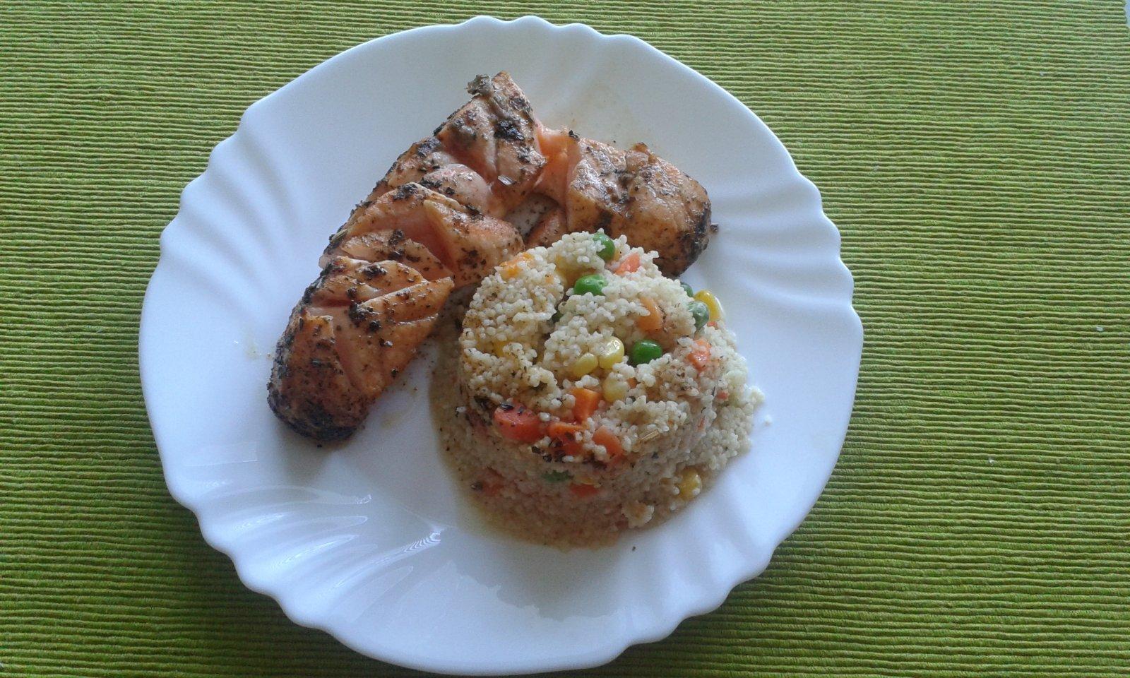 V nedeľu som robila pečené dolné kuracie stehná na jablkách cesnaku a cibuli , len soľ oregano a kmín k tomu bol kuskus s domácou vegetou ochutený a šalát som robila z čerstvej kapusty , mrkvy, jablka , oliv olej , vínny ocot červený, chren , pór , kapustu som preparila s horúcou vodou , bol perfektný jesenný
