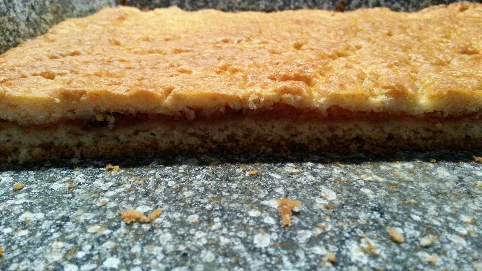 Těsto vylejeme na plech s pečícím papírem. Pečeme při 180 stupních asi 30 - 35 minut.