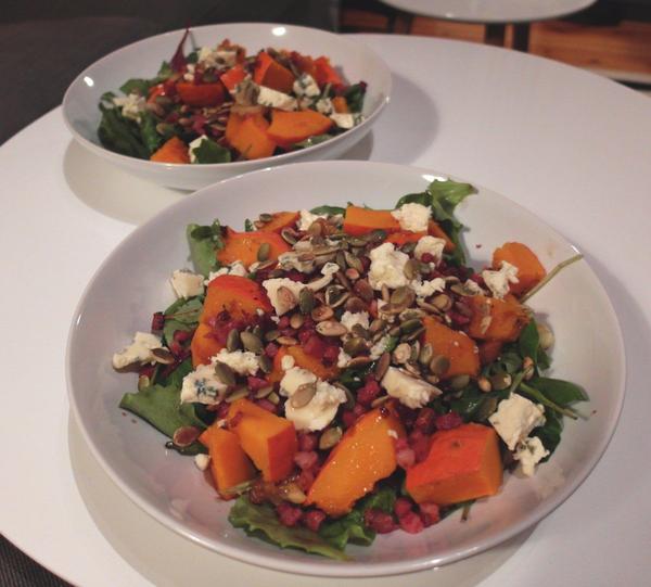 Robila som tento sýty šalát s pečenou tekvicou, slaninou a syrom s modrou plesňou 🙂 Recept je tu: http://anetagoesyummi.blogspot.de/2015/12/syty-... . Odporúčam!