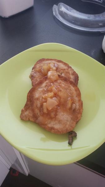 Skoricovo jablkove lievance so skaramelizovanymi jablkami.