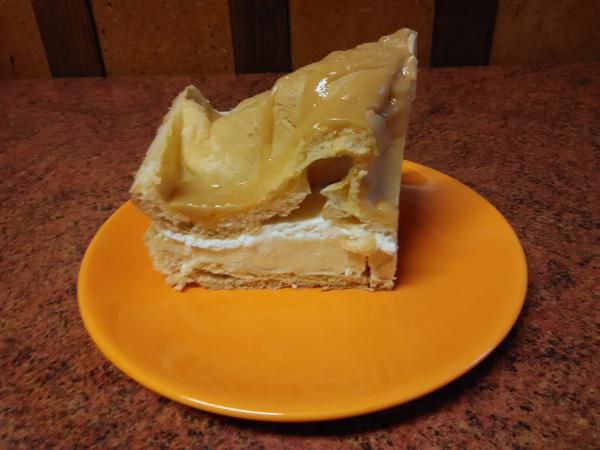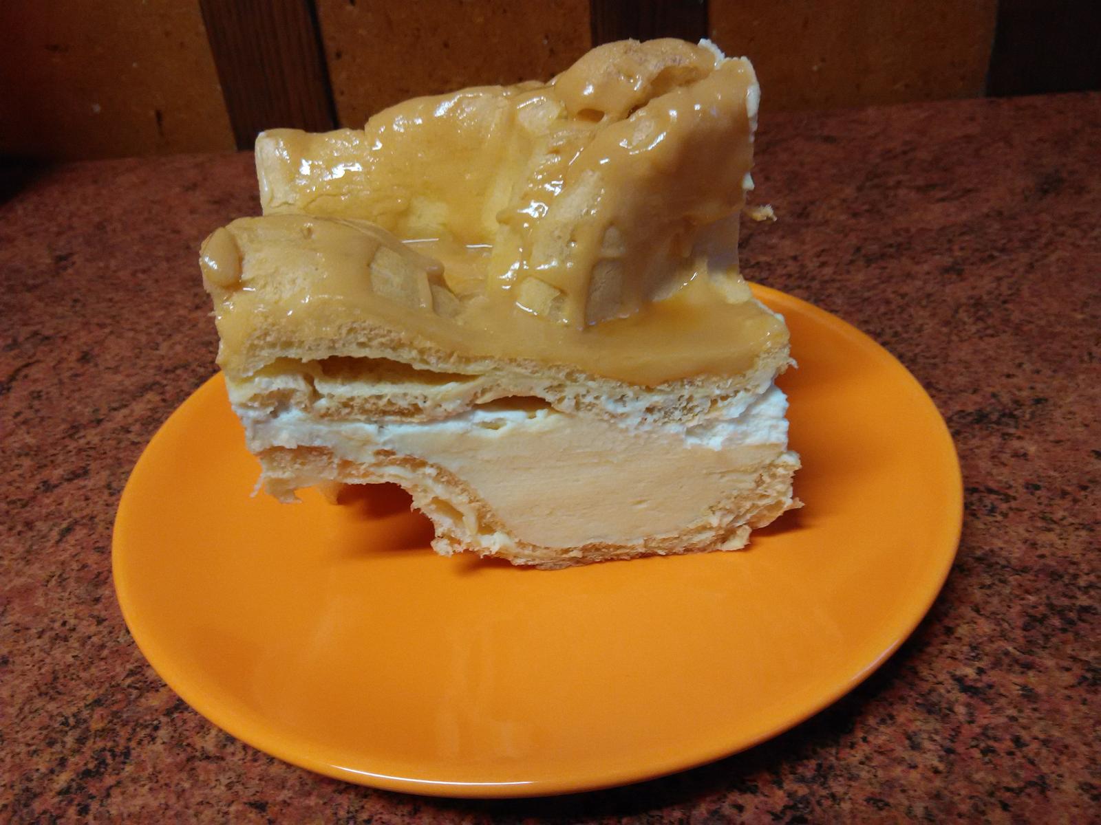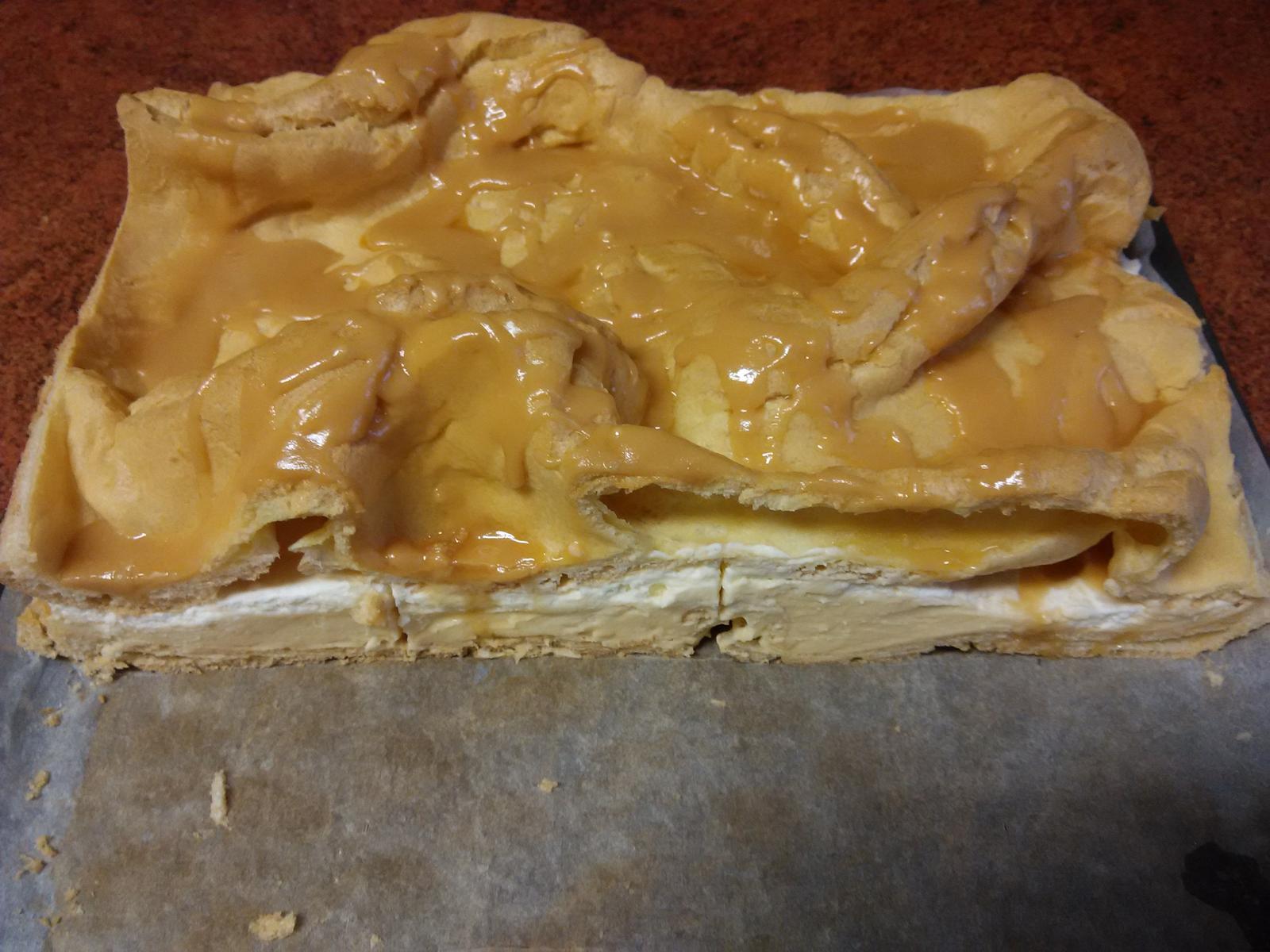 Natřeme na karamelový krém a přiklopíme horním těstem (hrbolky nahoru).