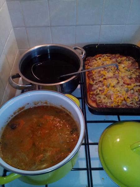 dnes hustá gulášová polievka a špagety s mletým mäsom,