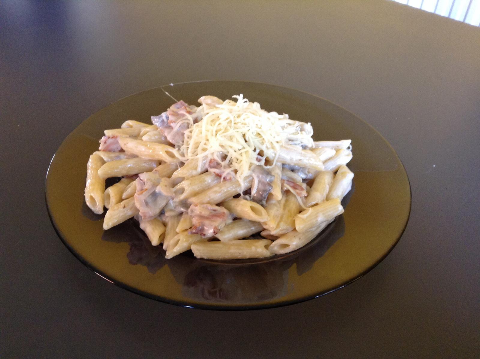 Hraskova polievka s haluskami,spagety so syrovo-smotanovou omackou..rychla mnamka