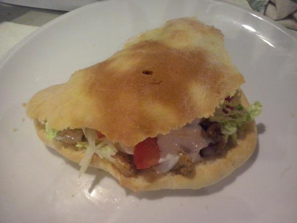 ahojte dnes pita chlieb s gyros mäskom a zeleninkou a cesnakovým dresingom