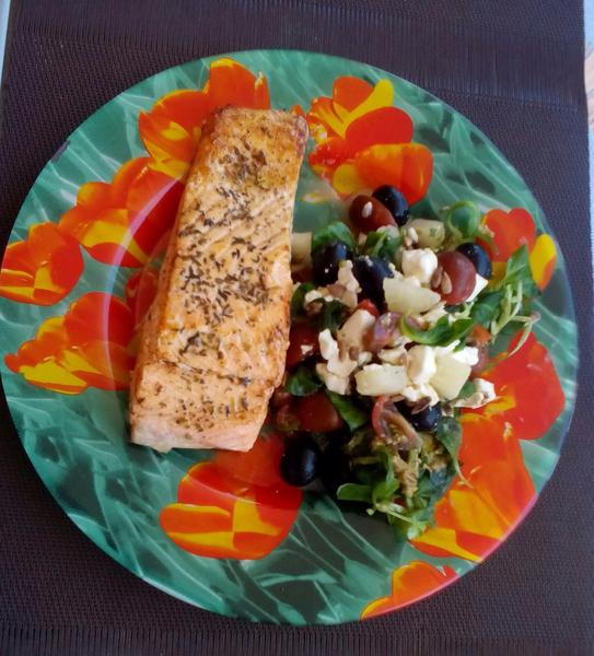 Dneska kapor vysmazany s citonom a k tomu salat zeleninovy ladovy salat,paradajka,paprikA ,cherry ,uhorka ,a mozzarella zajtra slepacia polievka s domacimi rezancami a plnena paprika d chlebom