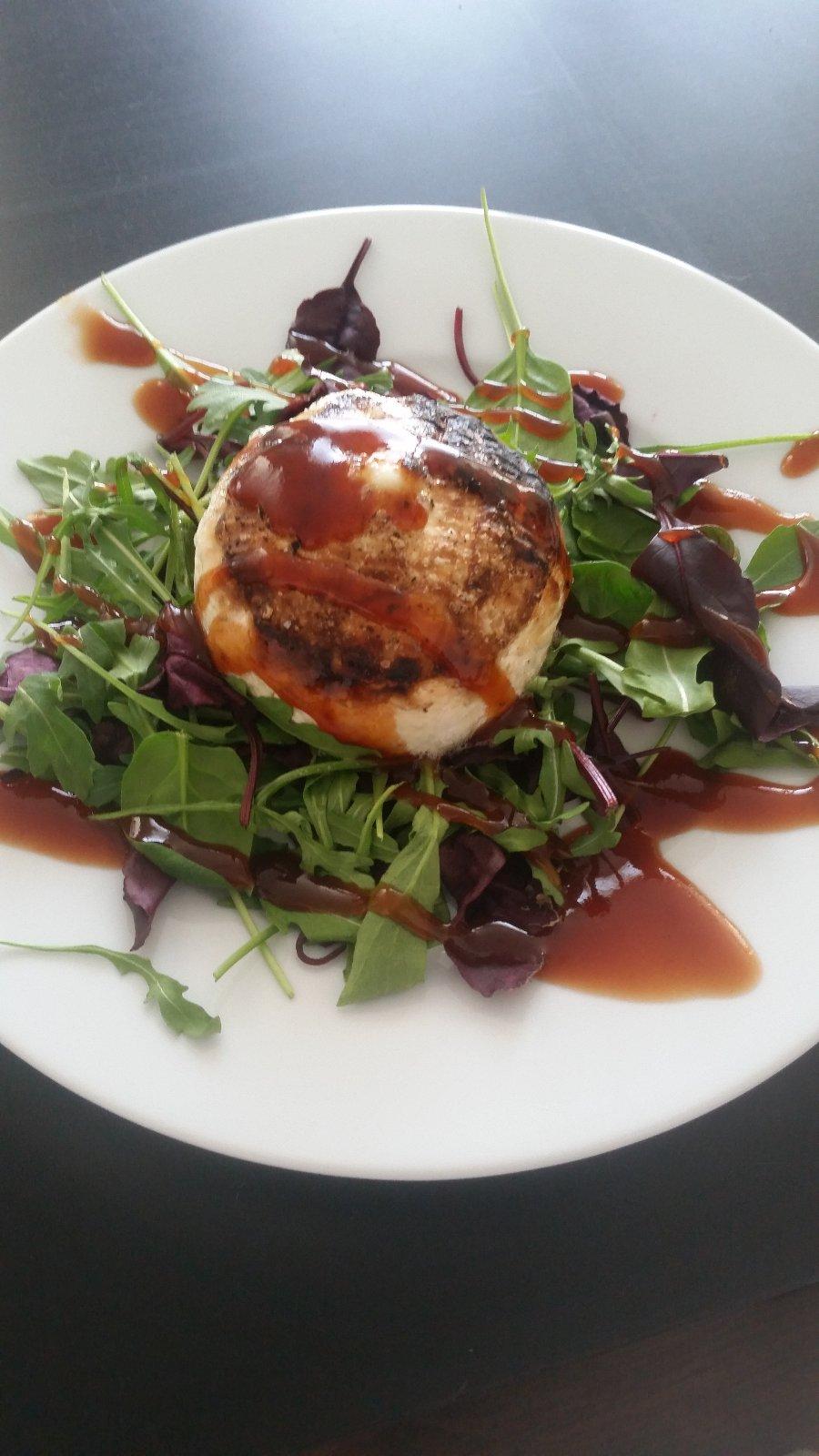 cesnakovú polievku s vajíčkom, s mužom vysmažený syr a zemiakovú kašu a syn zajačiu pečienku na šťave s kašou.