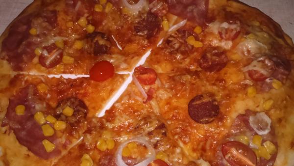 na večeru sú piza tousty - toustový chleba, kečup s pretlačeným cesnakom a piza korením, nastrúhaná niva, kukurica a kolieska salámu zapekám v rúre cca 10 minút