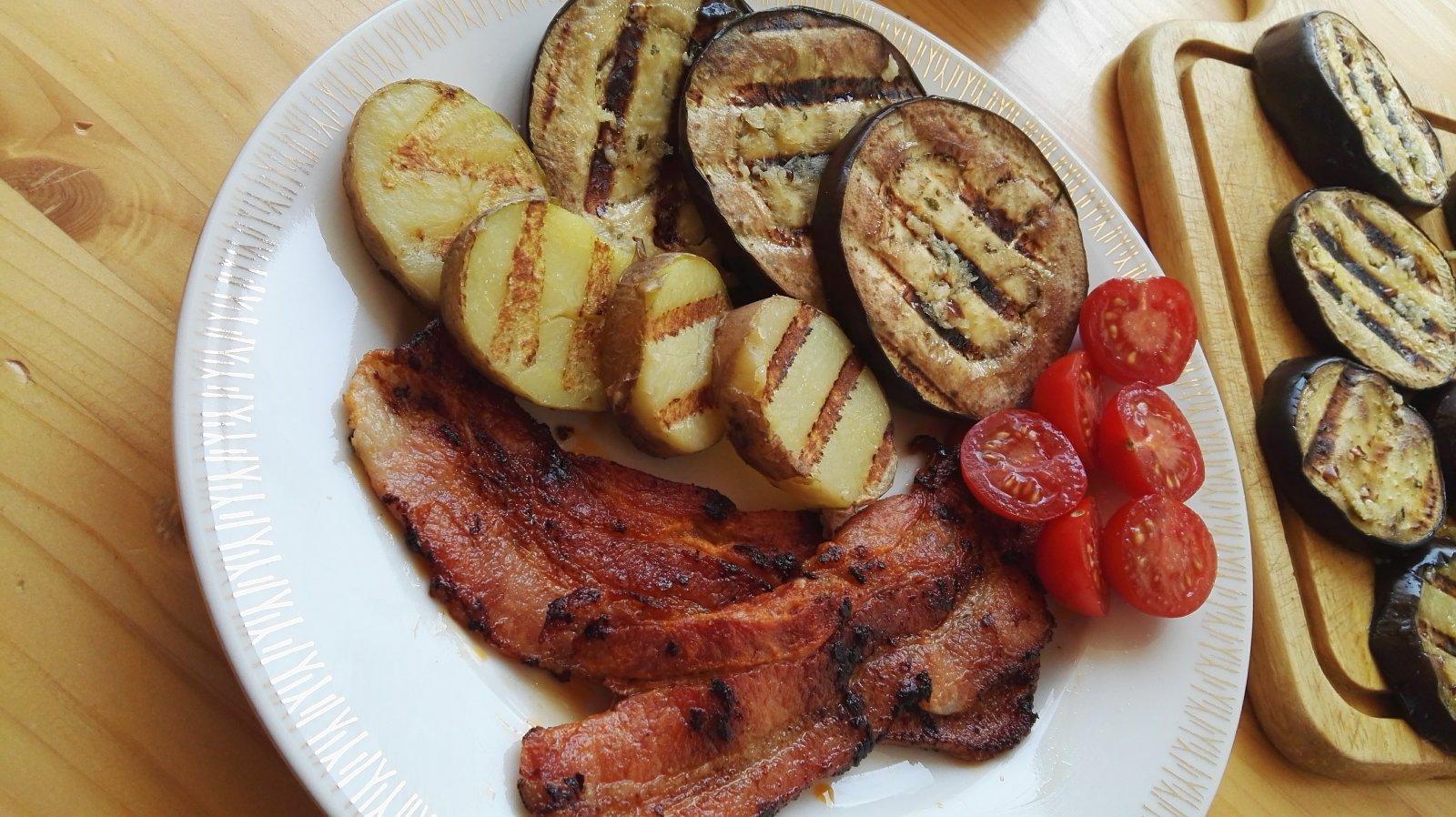 na večeru sa práve pečie grilovaná zelenina - u nás sa jej hovorí pečený grécky šalát. v miernych obmenách, lebo som dávno nepozerala na origoš recept a robíme to teda dosť často. odporúčam na grilovačky a letné posedenia, je to lahôdka