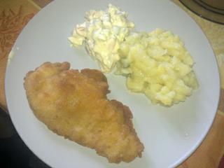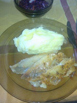 ja som dnes robila lososa a morského vlka so zemiakovou kašou a na večeru bola tuniaková nátierka, hrianky a čerstvá zelenina 😉 a od zajtra dovolenkaaaaaa 😀
