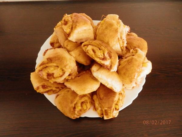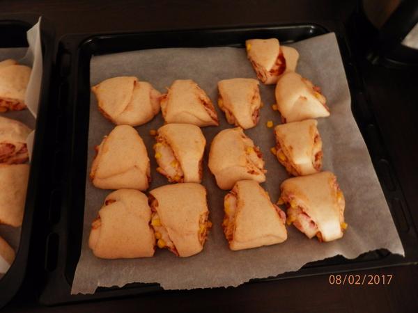 Na pizzovniky : paradaj.pretlak husty zmiešať s kečupom a pizza korenim,cesto rozdelit na dve časti, rozvaľkat, potrieť touto zmesou a naplniť tym čo ma kto rad,u nas šunka, syr,kukurica, olivy a cele zrolovať:potom sa to kraja na trojuholniky, ale tak aby sa to celkom neprekrojilo, ten hrot, aby ten pizzovnik drzal pokope.Na plechu sa to necha cca hodinu kysnut, krasne to nakysne , potrieť rozšľahanym vajičkom.Pečie sa na 180 C.