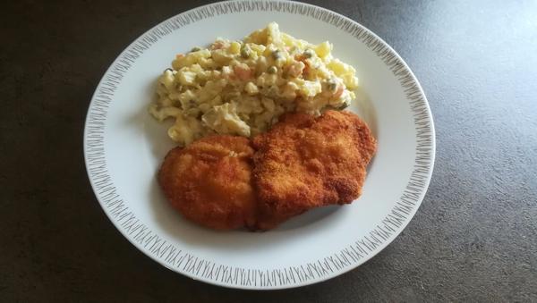 Gulasova polievka a bravcove rezniky s mrkvovo-zemiakovym pyre zo vcera.